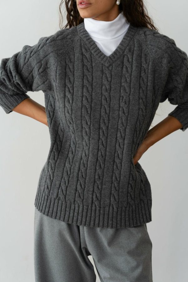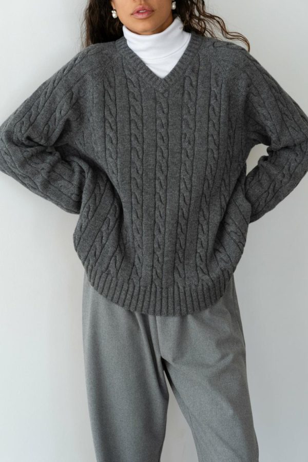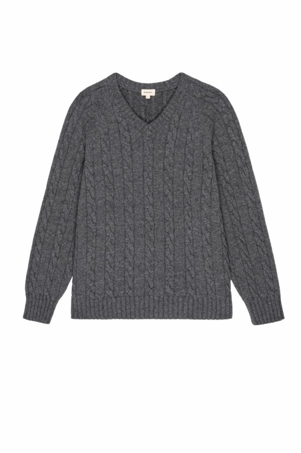 DONNI The Cable V-Neck Sweater | Women Sweaters
