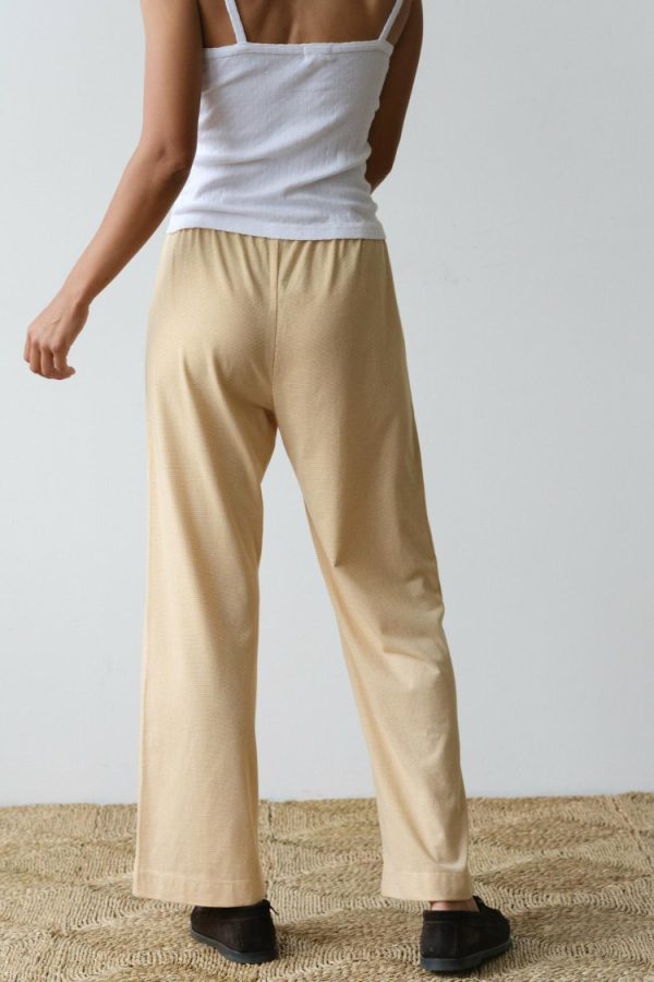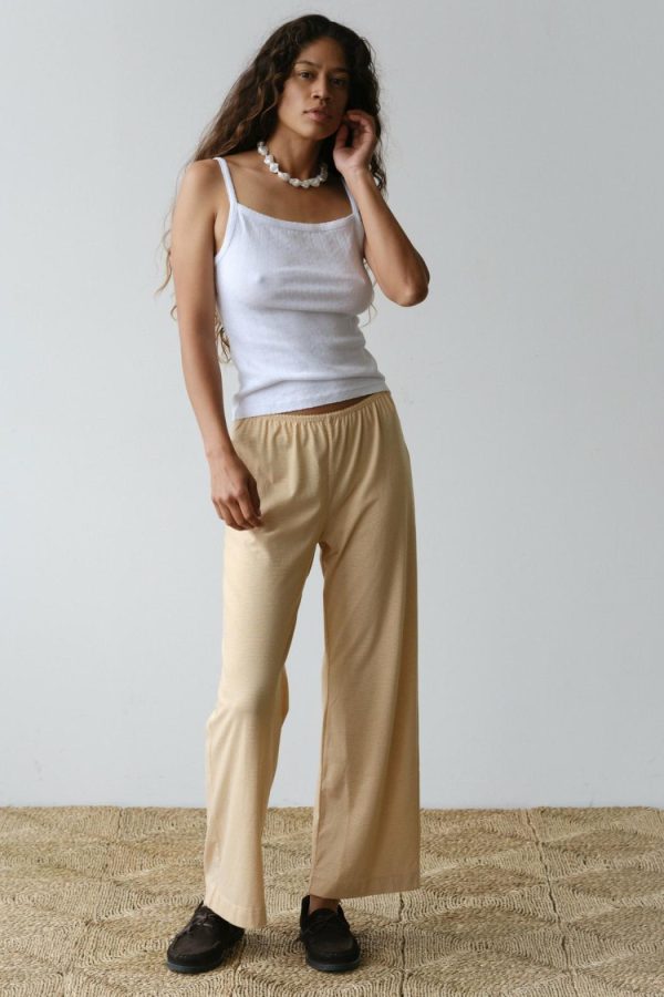 The Jersey Crop Striped Pant is crafted from 100% recycled materials. It features a cropped fit, and an elastic waistband with scalloped detailing.