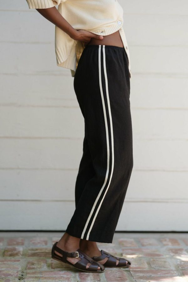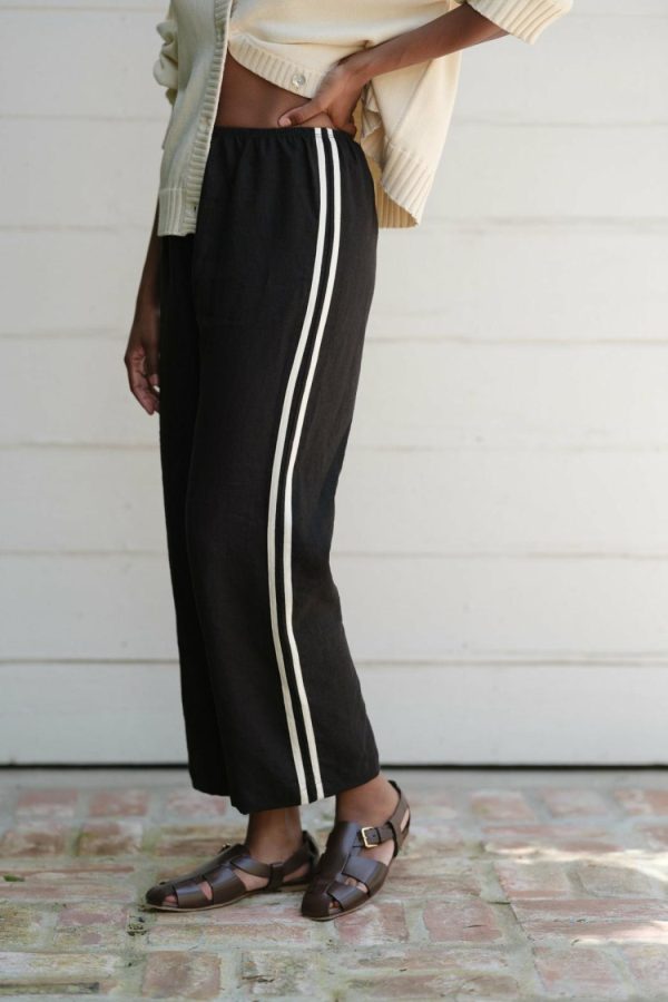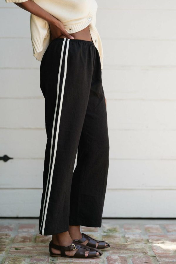 An effortless wardrobe staple with a featherweight feel. Crafted from our 100% linen fabric with an elastic waistband, racer stripes, cropped fit, and wide leg silhouette.