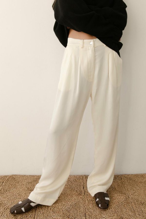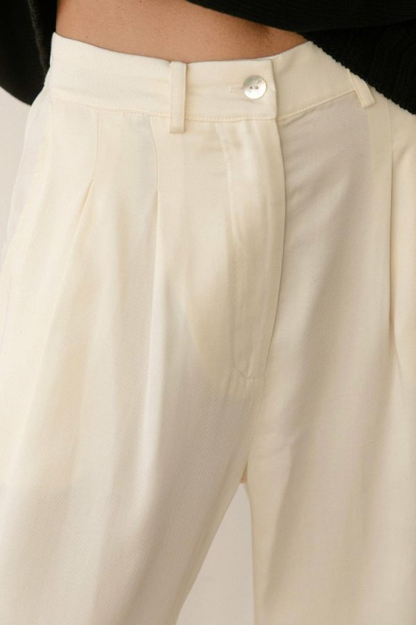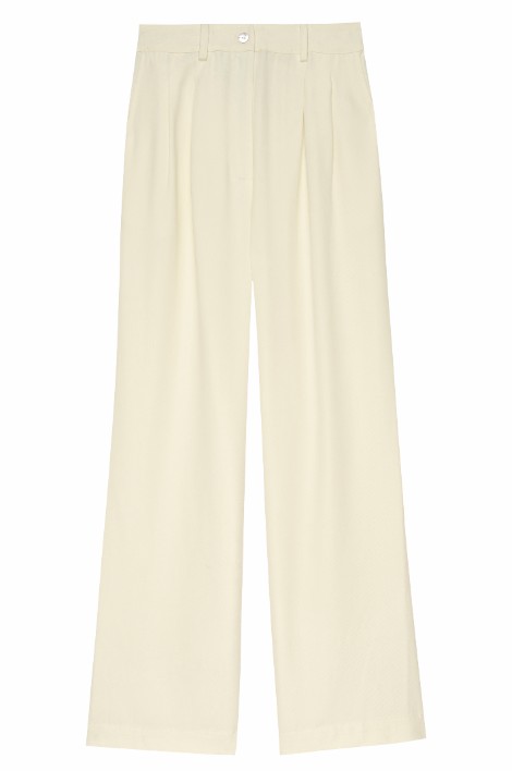 The Pleated Trouser is crafted with 100% Lyocell Twill, featuring a relaxed fit, mother of pearl buttons, belt loops, pockets and pleats.