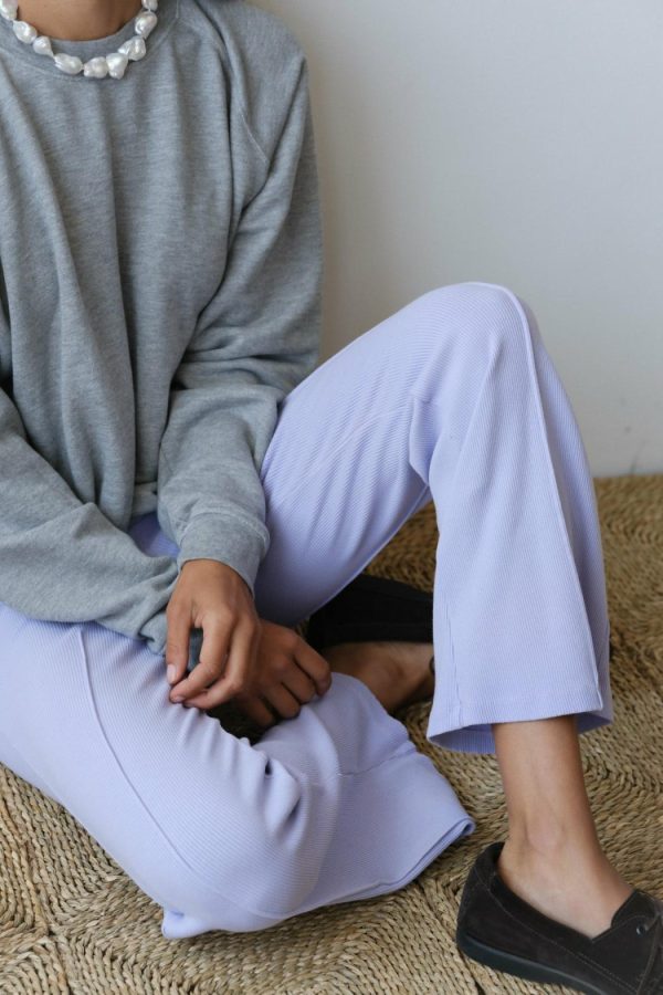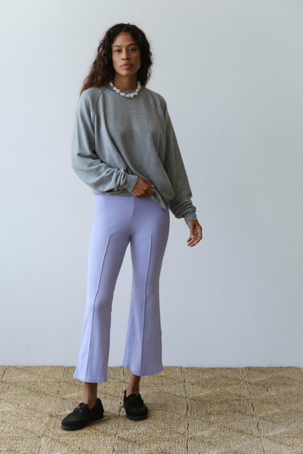 Please note, the inseam on The Rib Kick Flare in Lilac is running short at 26″